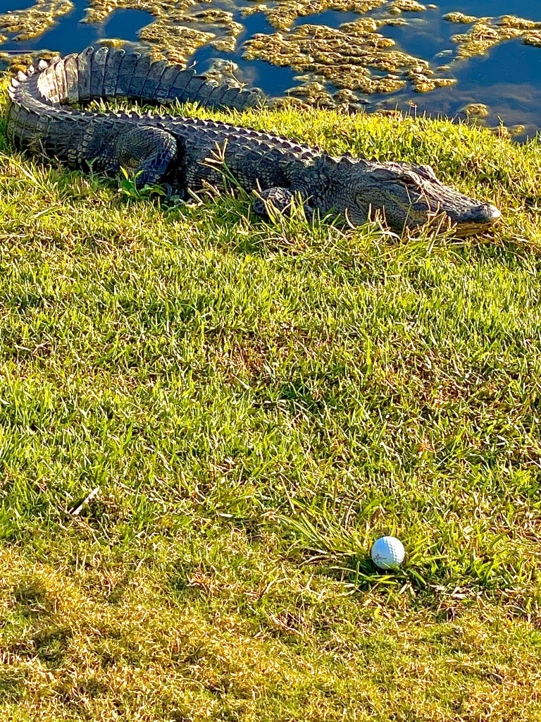 She arrived in Palm Beach Gardens on Wednesday where she and Coach Carl Rabito played a practice round at 1 that afternoon. Practice was great with B shooting a 1 over 73. As Danny Z likes to remind us, practice rounds are not tournament rounds but never the less it was certainly a confidence builder. There is one caveat to that score as we did not make Jordan complete one hole and gave her the par rather then have her chip it. Picture below should explain why.