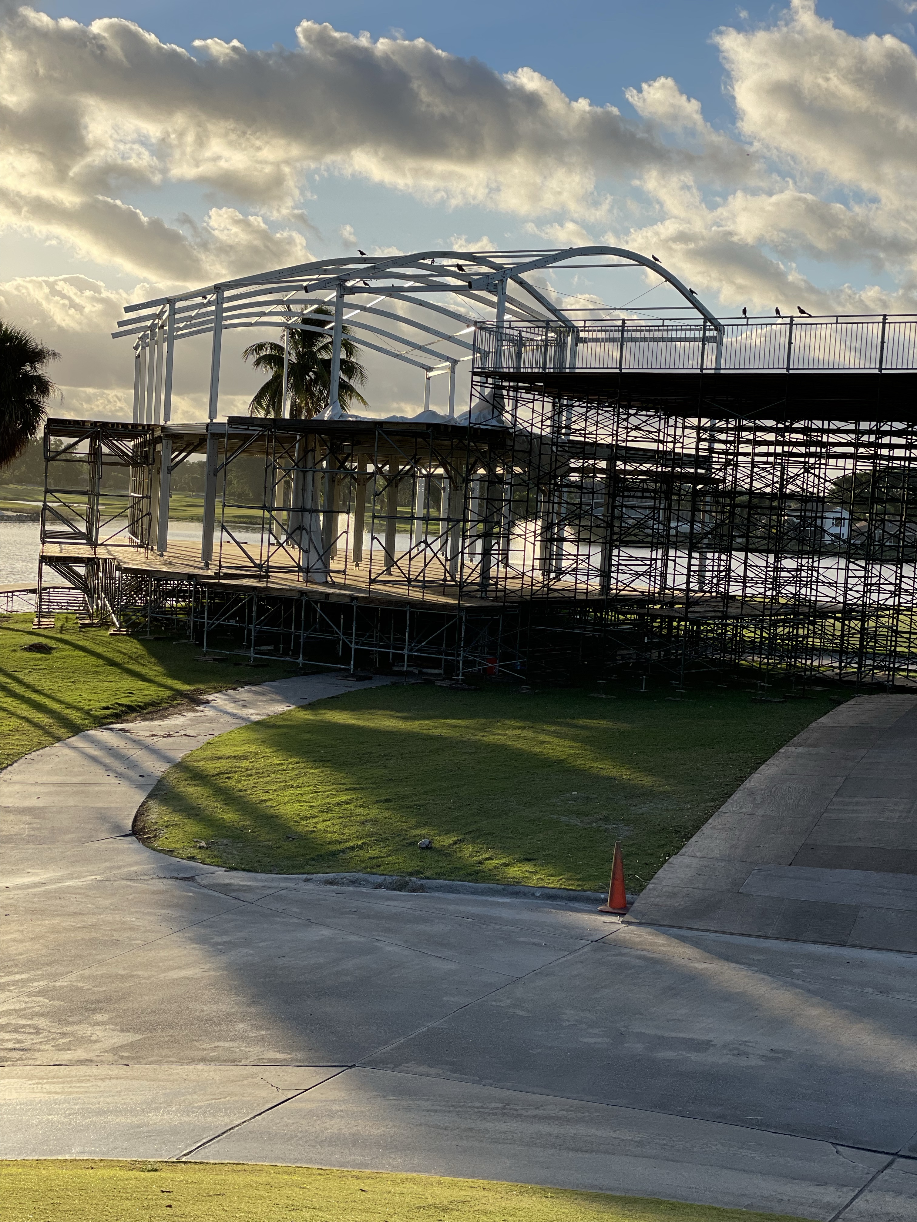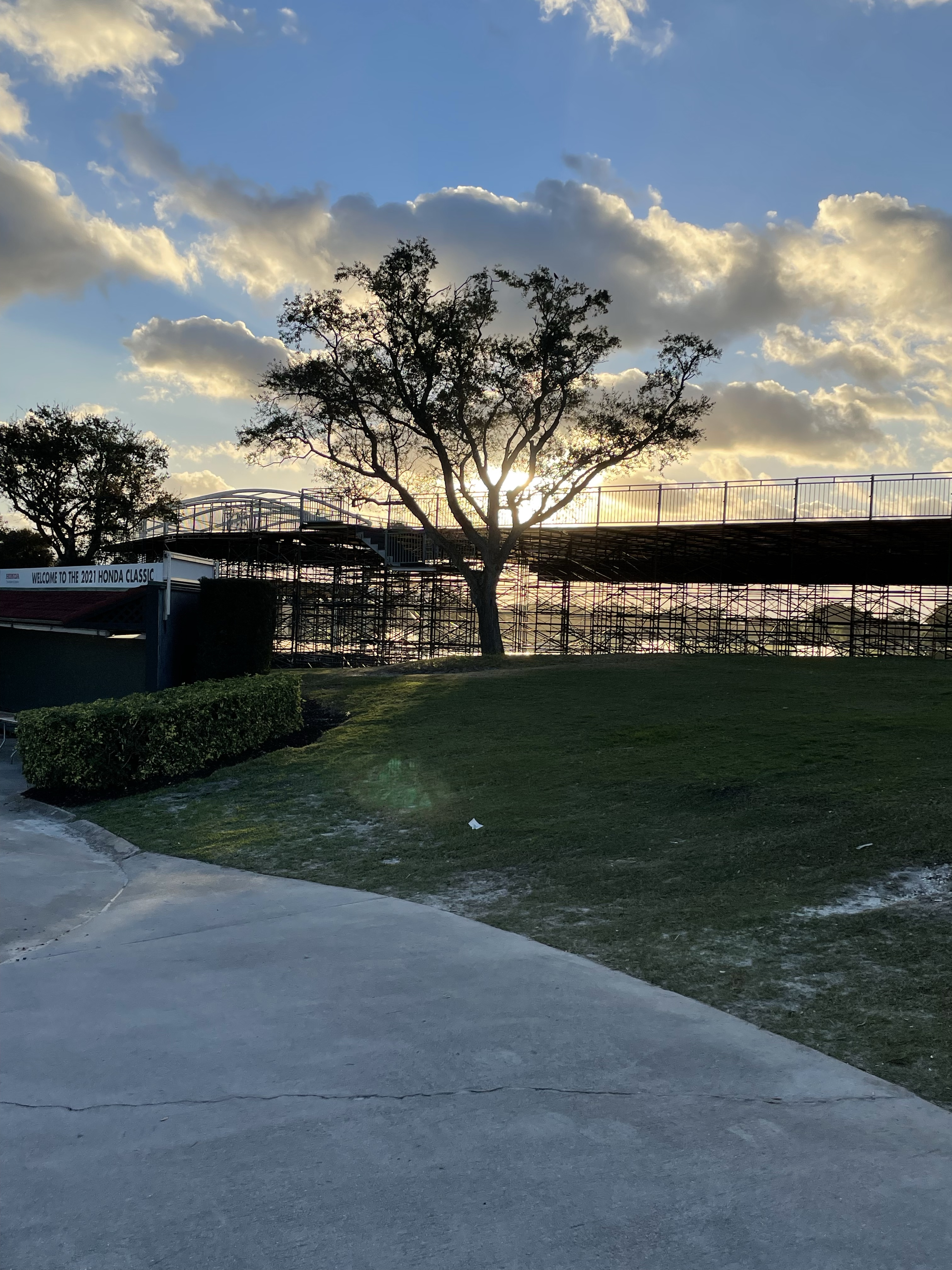 It is a spectator morning here at PGA. There is a backdrop of the set up of the grand stands for next months HONDA Classic for the professional mens tour.