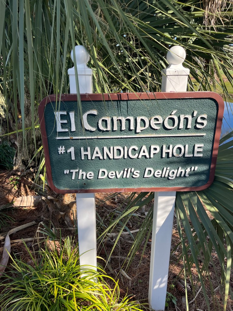 “Mission Impossible,” by those that play it. Hazards are everywhere with a number of doglegs, trees that seem to pop out in the middle of the course, narrow fairways, tons of beach front real estate, and plenty of water. The number one handicap hole on the course is known as ”The Devil’s Delight.” Shots there need to be precise both in direction and in distance and with winds predicted to gust over 30 miles an hour, scores are going to be high.