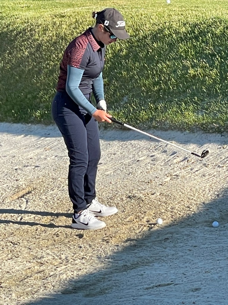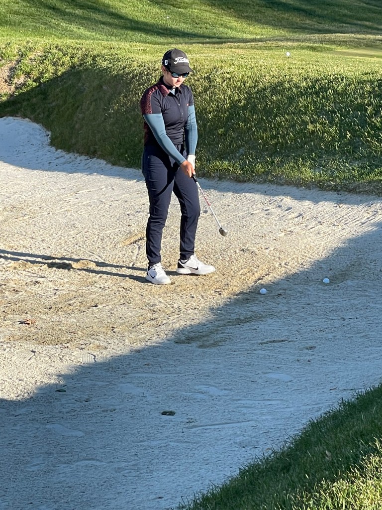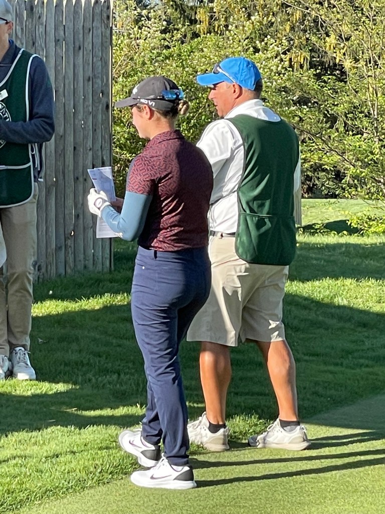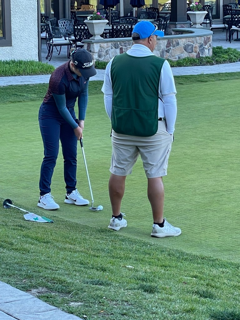T off was at 8am from number 10, a par 5. Jordan’s drive was great. Her second shot would hit the edge of the green and roll back into the bunker. She would go on to double the hole. Who knows how the game would have gone if the ball had simply bounced forward toward the hole at impact rather then backwards into the sandbox. She would have had an opportunity for an eagle putt and her head may have been in a very different spot. Alas, that is not what happened and Jordan had one of the highest scoring rounds of the last year that she has been competing. This was a 36 hole tournament and the first 27 holes were not a representation of how she has been playing of late. On the 10th hole of the second round she got it together and would shoot 2 over for the back 9 including a birdie to end the day.