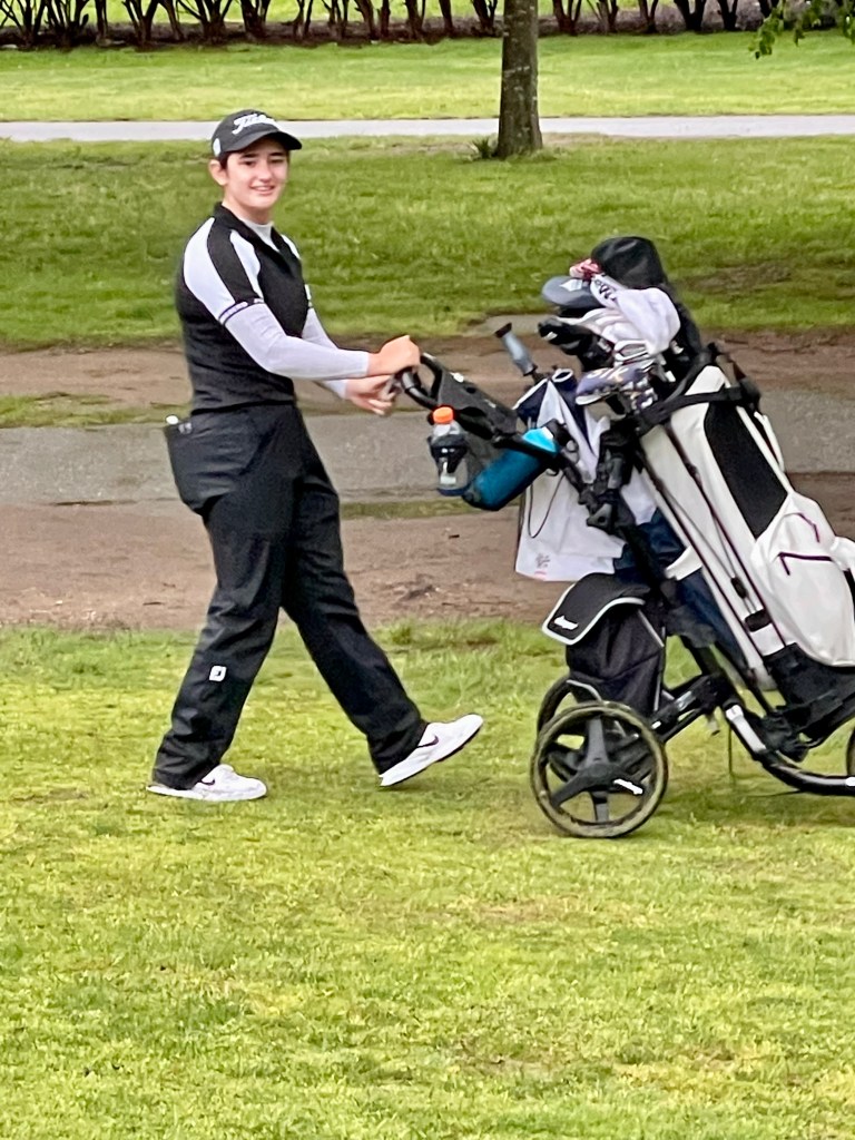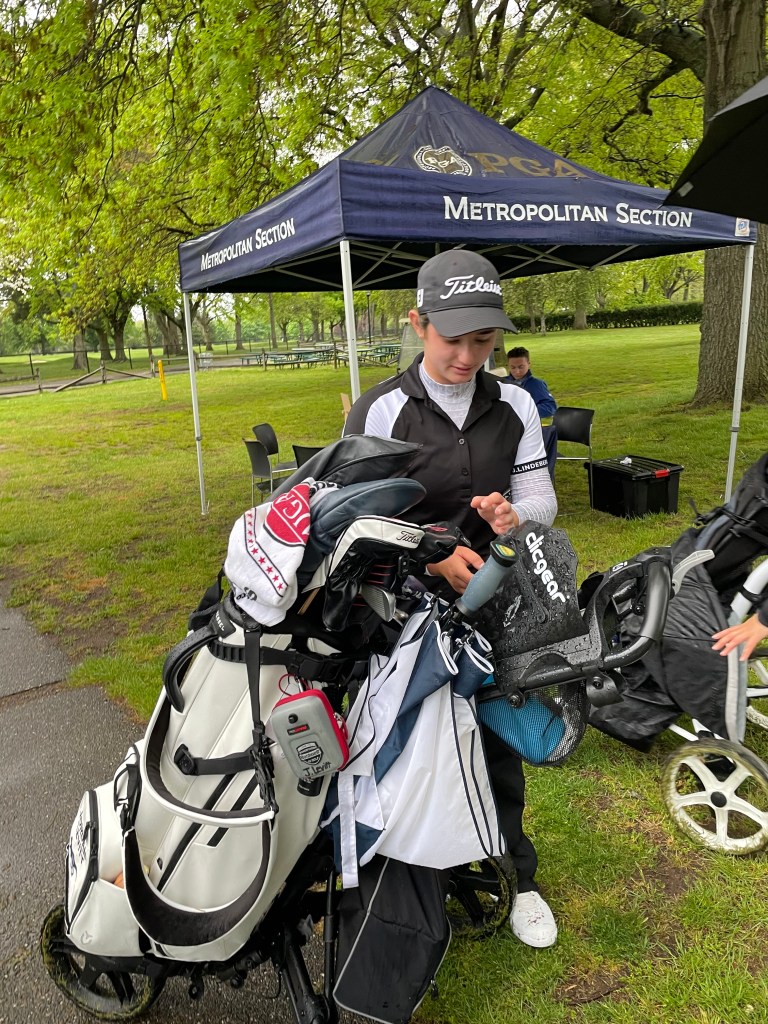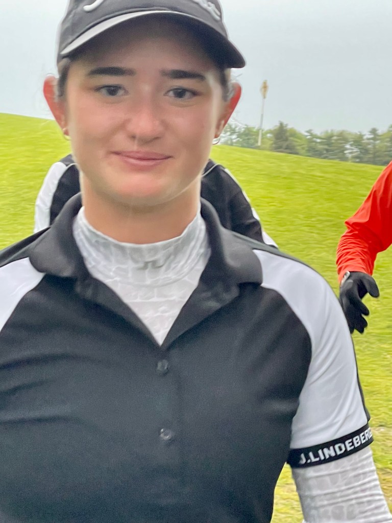 Jordan started with a bogey on one after a bad bounce took her into the trap. Hole two was a par as was number three though she had to go up and down to do it with a one putt. Hole 4 was par, hole 5, a par three ended up being a 3 putt for bogey. She landed on the green but was miles from the cup. Hole six was her first legitimate birdie opportunity, but she missed and had to settle for par. 7 was a par, 8, another par 3, and another 3 putt for bogey. 9 & 10 were pars in the driving rain, and 11 was a bogey but could have been a disaster as the drive ended up in the long grass. 12 was a par as was 13, a tap in, and almost a birdie. Jordan has played Eisenhower white now 6 times and this is the first time she has ever not gone a bogey or worse on that hole. 14, a par 3 was also a par, an up and down 1 putt. 15 and 16 were pars, as was 17, a tap in that missed being a birdie by inches. To cap off the round, Jordan was inches from a chip in eagle, making her first and onlyπ₯ of the day on 18.