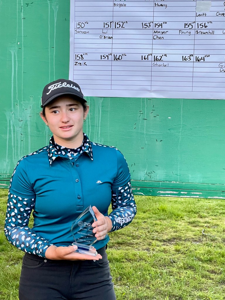 After the bogey on one, Jordan would par 2, birdie 3, par 4, bogey 5, par 6, birdie 7, par 8, and bogey 9 for plus 1 on the front. 10 was a par as was 11. 12 was a bird, bringing her back to even. Both 13 & 14 were pars, and then 15 was a bird bringing her to -1. 16 was a bogey bringing her back to even. 17 would prove to be her worst hole of the day. It was a par 3 and her foot slipped slightly just before impact opening the face of the club and sending the ball into the rough on the far right of the pin. The second shot flew as far badly in the opposite direction but onto the green about as far from the pin as possible. She would then three putt for a double, her first and only one of the day and would put her at plus two taking the possibility of shooting under par today out of her reach. She finished the day super strong with another 🐥, her 5th one of the round. For the record, this was also the most birdies that B has ever shot in a single round. All of Jordan’s trouble today was on the par 3’s. She had two bogeys and a double bogey. Incidentally, that would have been the difference between her 3rd place finish for the tournament and her tying for first and forcing the match into sudden death. This writer does not know what this means for practice, but I have no doubt Jordan’s coaches do and that this will be the focus for her practice this week.