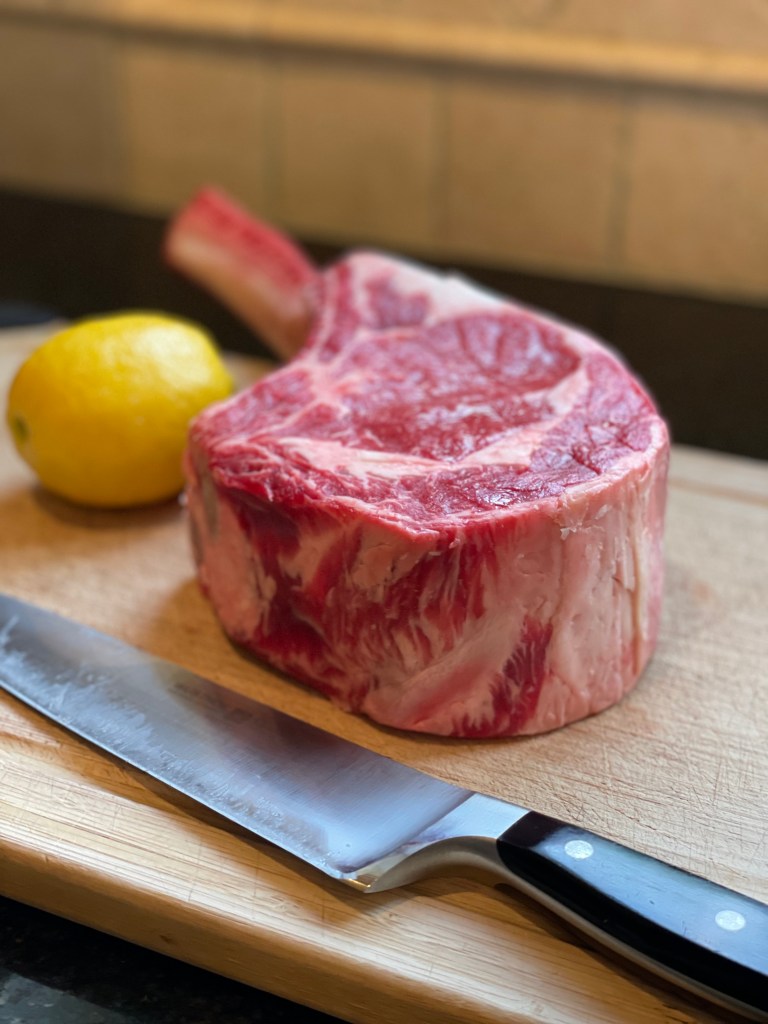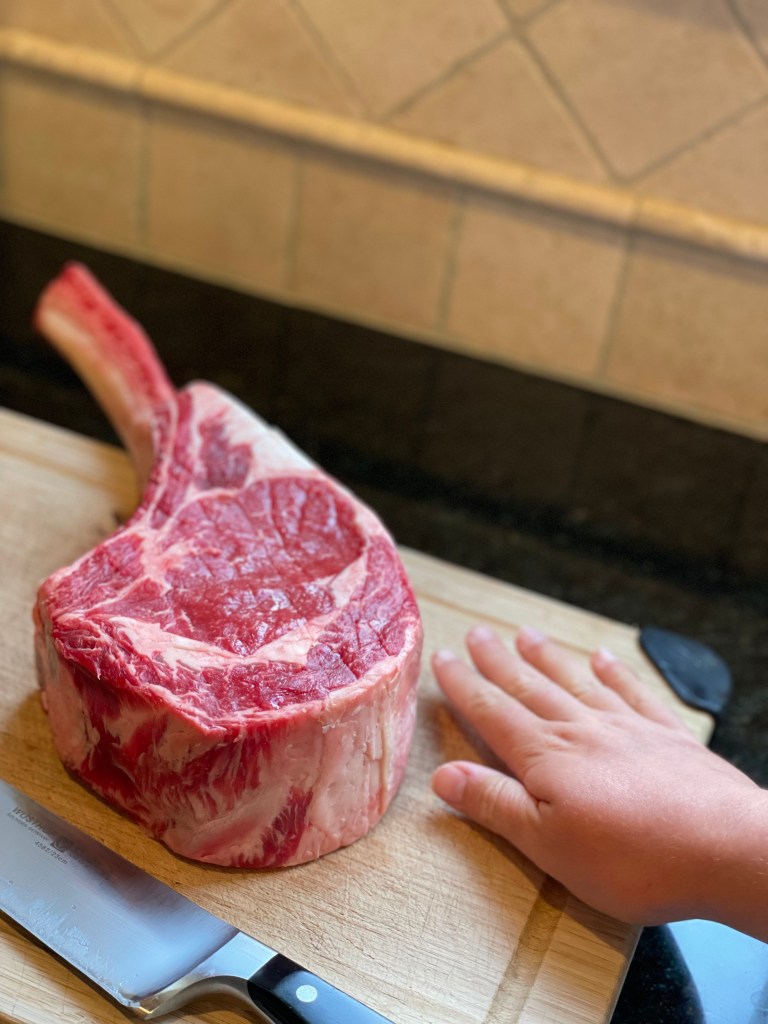 Jordan’s favorite meal to get her ready….a 3.5 lb Tomahawk Ribeye