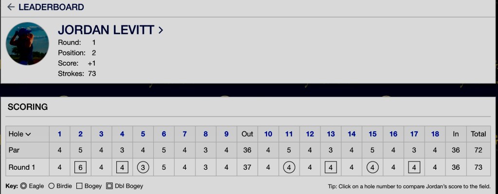2 thoughts on “Jordan shoots 73 (+1) and is in solo second place one stroke off the leader after day one of Spook Rock. (Click for more).