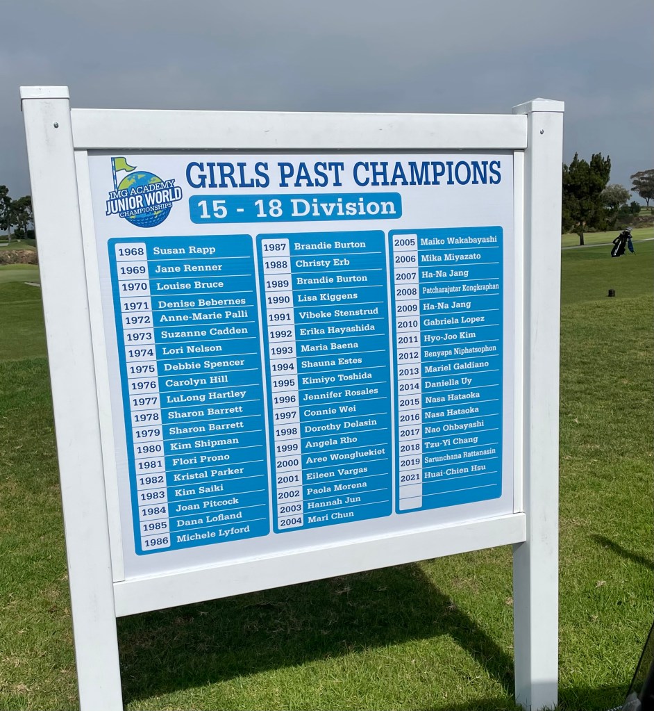 This is truly an international tournament with representation from over 45 different countries and 32 states. Jordan’s age group, the highest, 15-18 year olds is 160 in total. They will all play the first 54 holes, only 40 will play the last 18. Last year the cut line after 3 days was +6. The winner came in at -7. This is not going to be a walk off for B. Many of the girls competing will be attending and playing Division 1 golf schools in the fall.