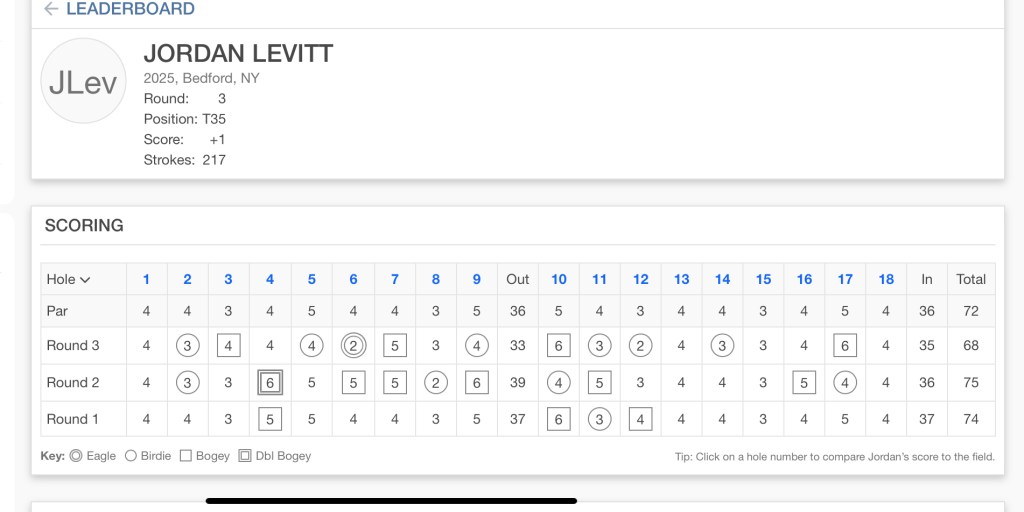 We promise to give a more detailed summary later of what happened yesterday, but in summary quickly Jordan had 6 birdies and an Eagle to go -4 yesterday. She will play the final round this morning having made the cut.