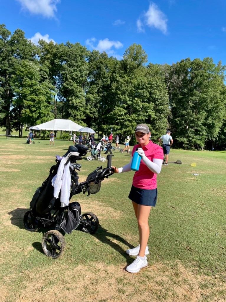 After a rollercoaster first day where B was as low as 12th place, she finishes the day with a heroic comeback to end day one at +1 and in a tie for 2nd place one stroke off the leader who is even.