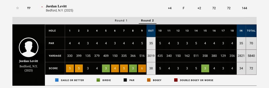 Jordan is in the thick of it. Currently she is in a tie for 7th place only 3 strokes out of third, and 4 strokes out of second place. This course is unforgiving and Jordan got a bit beaten up today on the front 9. She had 5 bogeys and 2 birdies to finish the front at plus 3. On the back 9, she was stunning. She shot one under par, bogey free with one bird. Instead of folding when it got tough, she found a new gear and grinded away.
