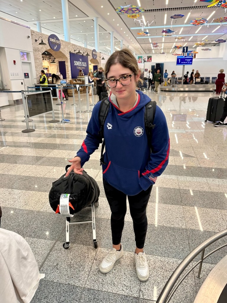 Ann again came through putting the group on a flight one hour later up to Westchester Airport where Super Mom and Amazing Sister Lyla were about to get some unexpected visitors for the night. Ann promised (she said she was 99.9% sure) that the bags would arrive in Westchester on the flight. As Jordan has an AirTag in her golf bag, she was 100% certain that as her plane left Charlotte for the journey north, her clubs did not. That was confirmed when off the carousel came zero of six bags.