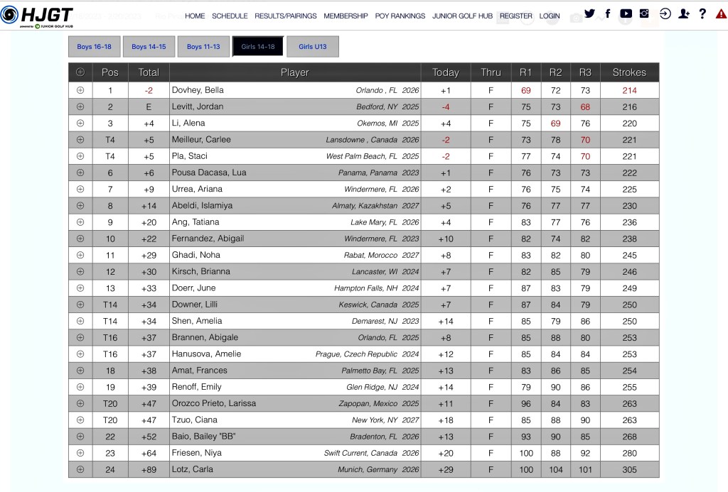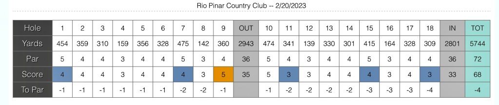 She was ready for a battle and brought her A game to Rio Pinar for the final 18 today. When the morning started, she was 7 strokes off the leader (we accidentally blogged 6 yesterday but it was 7) and damn near won trailing by only 2 strokes when she ran out of holes. Michael Jordan famously said, “I never lose a ball game, I just run out of time to win,” and that is exactly what happened to Jordan this tournament. B sunk 5🐥’s and matched her career tournament low score of 4 under par to conclude the tournament at even for 54 holes. The winner, Bella, is also 15 but is in the class of 2026 is ranked #18 in the world by the Junior Golf Scoreboard and lives on the golf course at Rio Pinar. She is a great player and she and Jordan will become nice practice partners it seems.