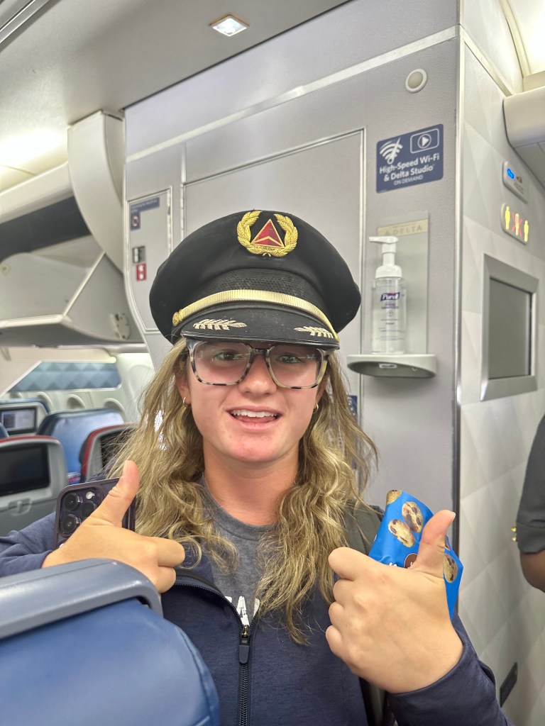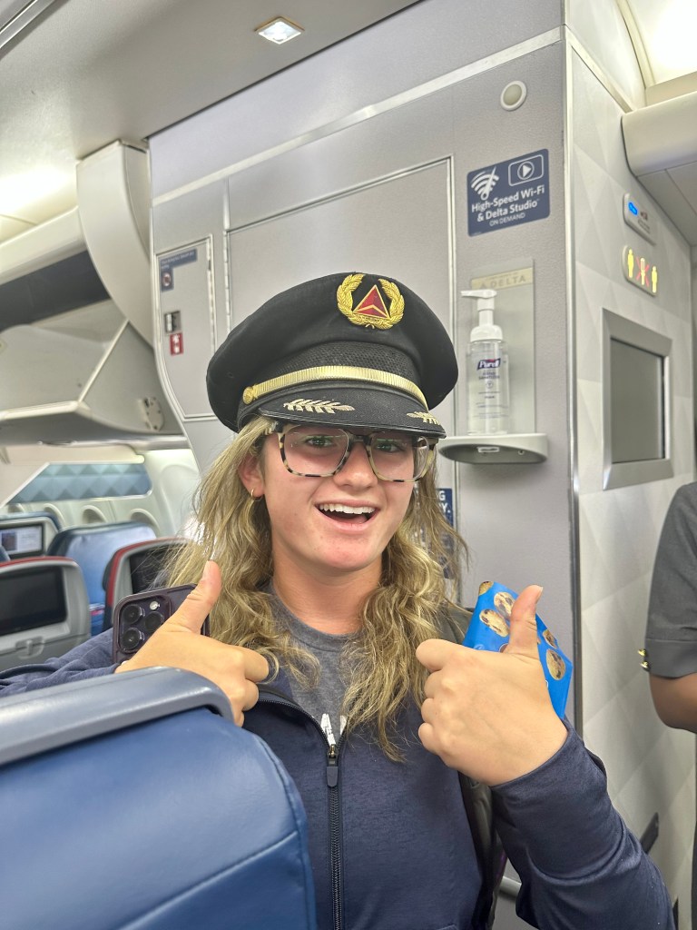When B was de-planing the captain asked if she would like to try on his hat. SuperMom snapped these.