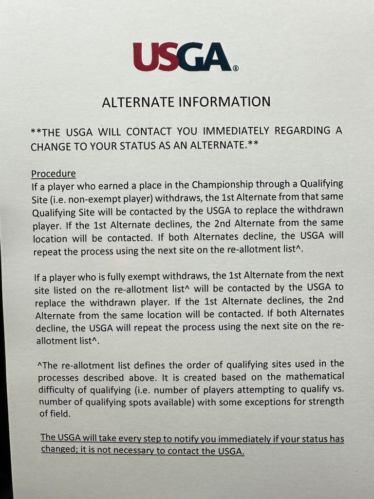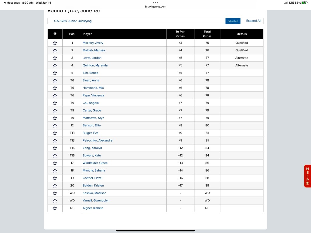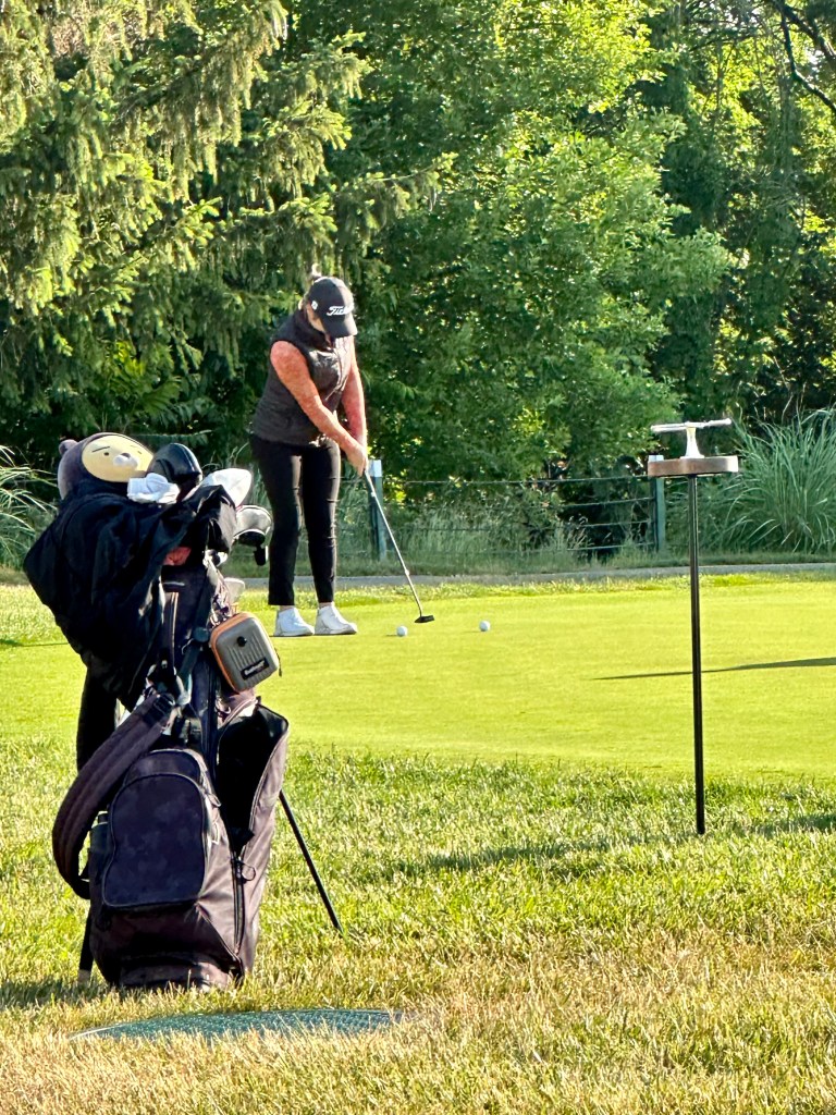 The playoff was a sudden death format, this meant that first player to lose a hole was done. It is a David and Goliath playoff…..Jordan, a 16 year old who is in her 3rd season playing competitive golf VS. Myranda Quinton who has just finished her first season playing Division 1 college golf for Penn. It would be much more fun if we could tell you that it went on for a while, but Jordan took her down in one hole. They played off of one, a par 5. Both contenders were on in three. Myranda took her first putt and marked her ball. Jordan….drained a 20 footer for 🐥to end the match making her the solo 3rd place finisher and the 1st alternate from the Shannopin Qualifier. Now it is a waiting game to see if she is offered a spot in the tournament. From what she has learned it can go either way, but there is a reasonable chance for her to get in. The strength of the field yesterday at Shannopin was extremely high and the course had a rating of 78. There were a number of top 50 players represented.
