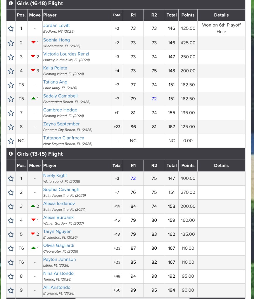 Final Leaderboard..Note that Jordan did not just win her flight, she won it all