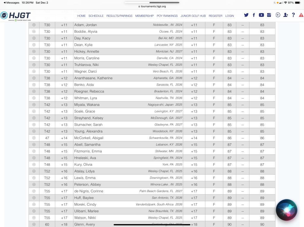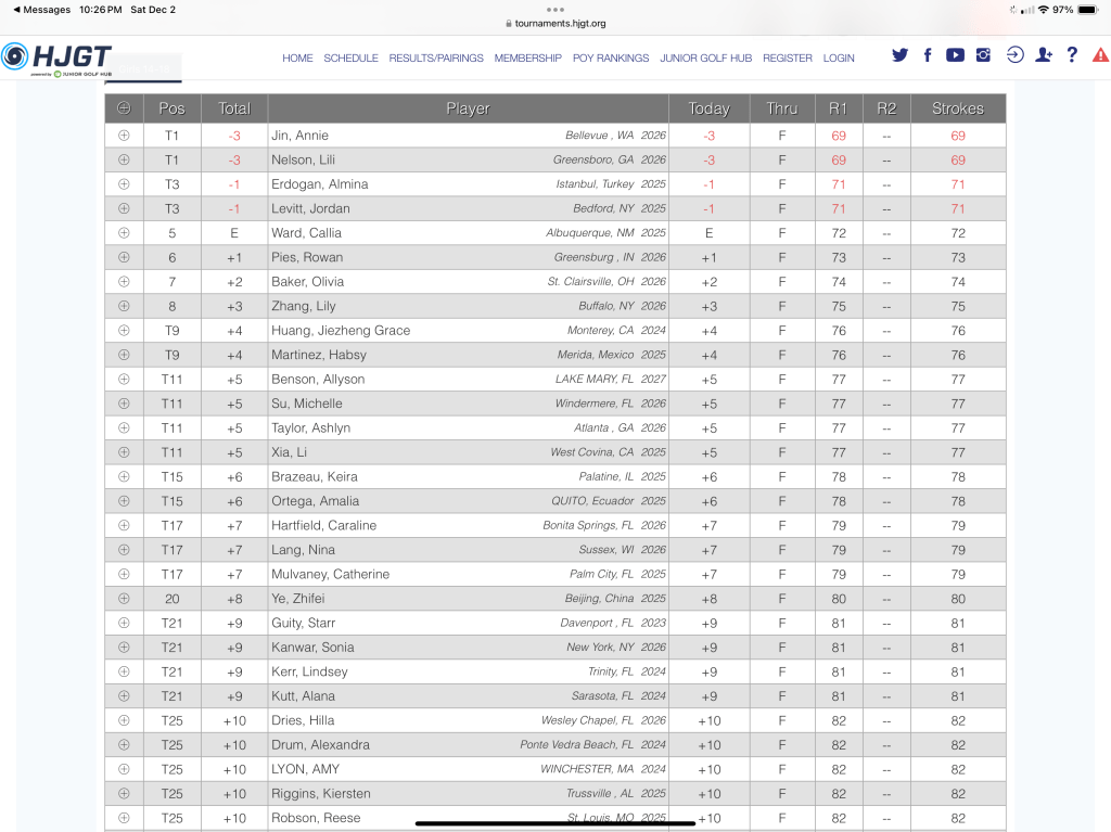 Great opening round for Jordan yesterday where she had two bogeys and three birdies at Championsgate. She kept the drama to a minimum as she hit all but one fairway and made 15 greens on the day with only a single three putt. In the car ride home when asked how she felt her round went B said, “I played mediocre. My chipping sucked.” As a spectator none of this was evident as her ball striking was nothing short of spectacular. There were 5 very long birdie putts that painted the edges of cups but that is golf. Jordan finished the round with a 55 footer for 🐥 to end in “RED NUMBERS” (this is what it is called when you shoot under par) on a course with a rating of 74.5 making her differential on the day -3.5. After the round she and Carl headed out to the chipping area and after 15 minutes Coach pronounced, “Chipping is fixed.”