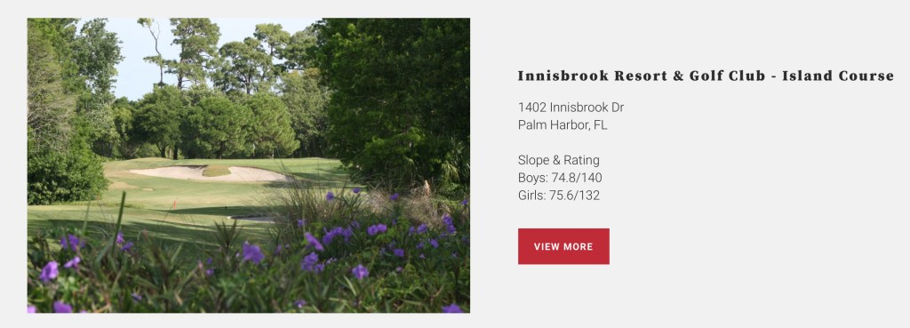 B will take the T at 2:00 today for her first AJGA of the 2024 season. This one should be super exciting for her. The AJGA is rolling in right behind the PGA who was at the resort last week for the Valspar. Much of the infrastructure for that tournament is still up all around including bleachers and grandstands and signage. This tournament will be on the Island Course for those who know the property, not Copper Head where the championship was played last week. The report from SuperMom from yesterday’s practice round is that the course is in excellent condition and greens are fast. There are lots of narrow fairways and hazards abound which will favor the ball strikers. This is a 54 hole tournament being contested over three days.
