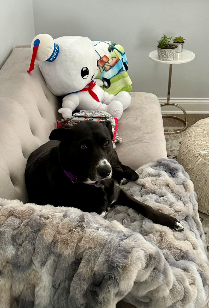 Lulu hanging on Jordan’s couch at home eagerly awaiting her return to Orlando.