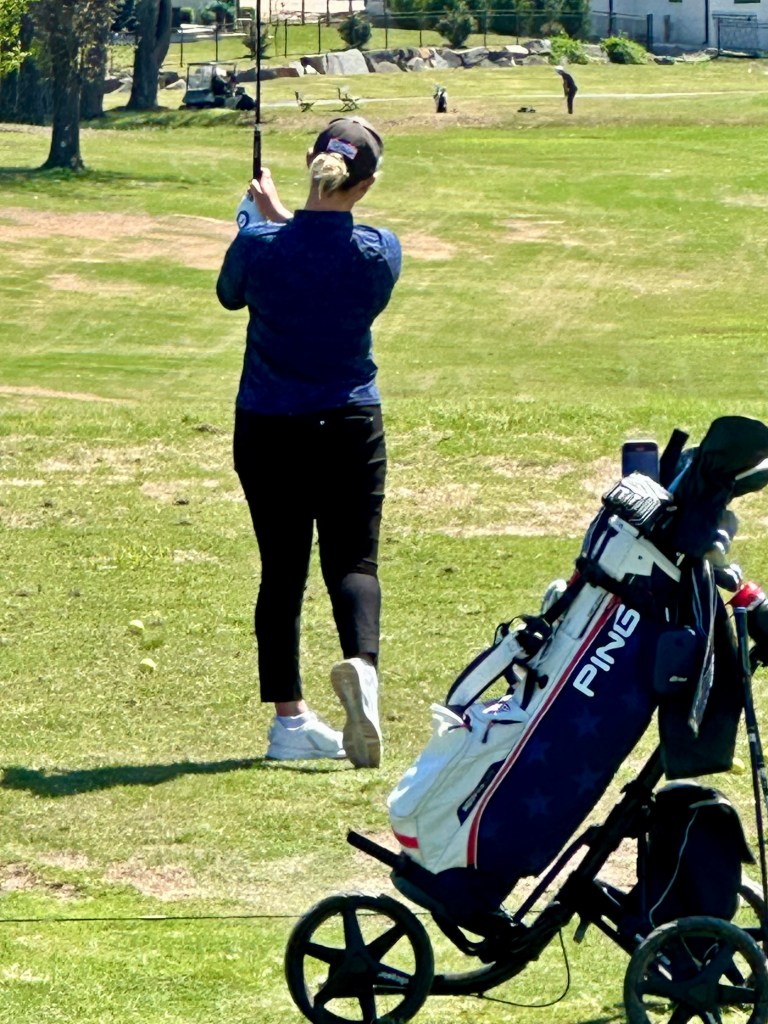 Tomorrow is another day and there are still 36 holes to play. After the round ended around two pm Jordan and coach Carl worked through some things via zoom as SuperMom held the camera and drove her from one driving range to the next closing down two so Jordan could get the work in to fix what was broken before tomorrow’s second round until the sun set. An early dinner and early to sleep as tomorrow’s T time will be at 8:27.