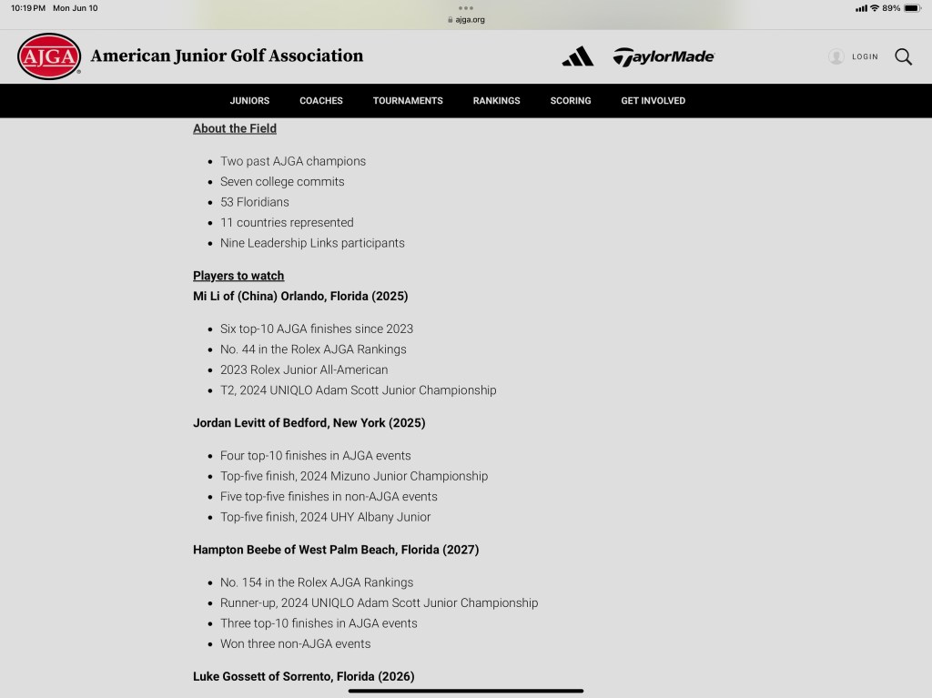 For the first time in an AJGA, Jordan is mentioned in the “Players to Watch” segment. GO B!!