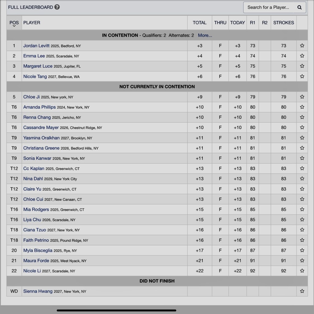 In swirling winds gusting to over 30 MPH the scores were going to be high. Jordan shot a plus 3 earning her the lead by a single stroke. Second place is plus 4, third is plus 5, and 4th is plus 6 so we have a very close field going into day 2. The race is on and tomorrow promises to be exciting to the finish.