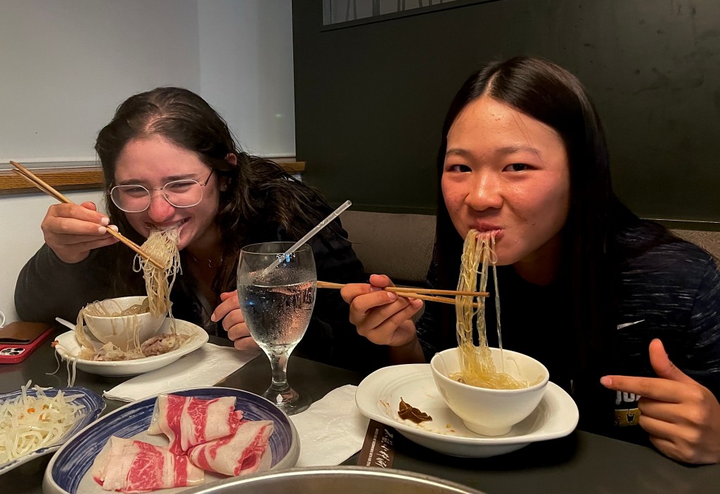 After the practice round she would putt for over two hours, then went back to Bolingbrook for another two hours of practice. Note that none of this was mandated by CC or dad, this was what she chose to do. Dinner with Iris and Yirong was Hot Pot at the Miserable Goat (actually the restaurant is called “The Happy Lamb” but Miserable Goat fits better).