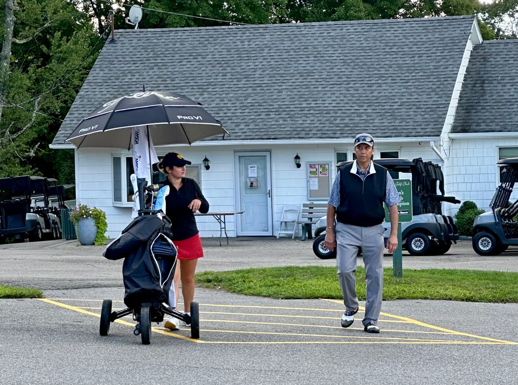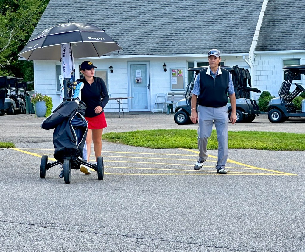Jordan has relaxed a bit over these past few days since she returned from the Northern Junior on Thursday night. Some time with friends, sleeping in, and of course daily practice. Today was the practice round at Salem where Jordan had a good look at the course. SuperMom and Coach Jerry Yochum walked along with B for the round today where of course it rained a bit in the afternoon heat and humidity.