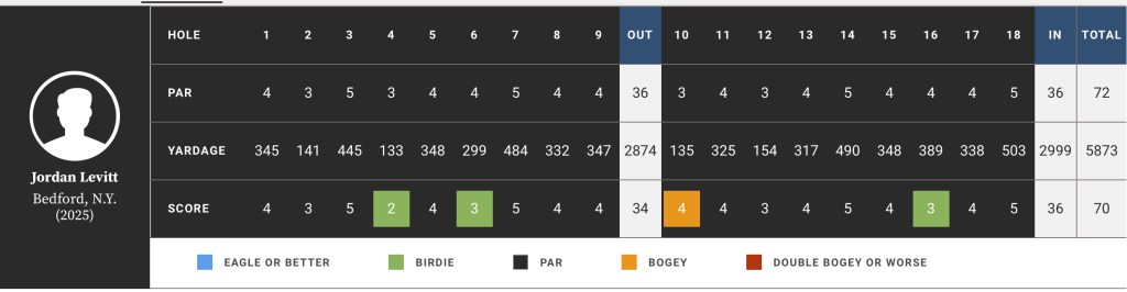 It was a brilliantly simple day for B today shooting -2 on the front, even on the back with only a single bogey (on 10) and 3🐥’s. There were 5 tap ins for par that separated a great round from an extraordinary one. There was only a single 3 putt on the entire day. Jordan was in her place and had the second best round of the day of the field only second to the leader’s -7.