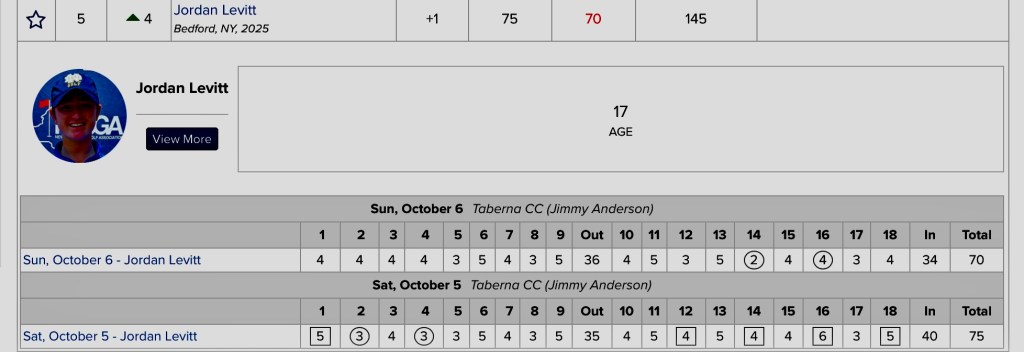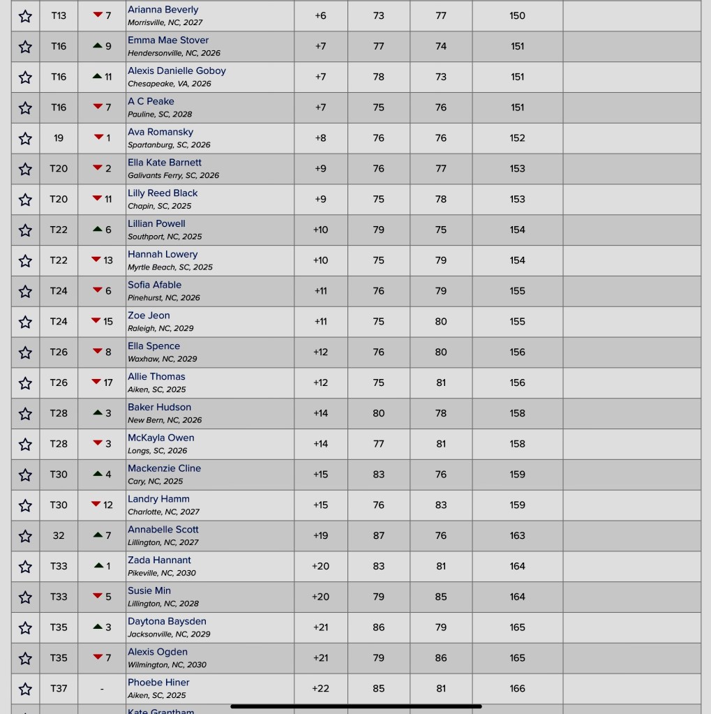 Yesterday was not Jordan’s best round. According to SuperMom, “Jordan can not hit her irons.” The round started with a bogey on one, then 🐥’s on 2&4 with everything else on the front being a par for -1 on the front. The back was where the trouble was. Jordan bogeyed 12,14,16,&18 to finish the round at +3 and place her in a 9 way tie for 9th place. She went right to range and SuperMom started rapid fire video to Coach Carl to fix the iron issue.