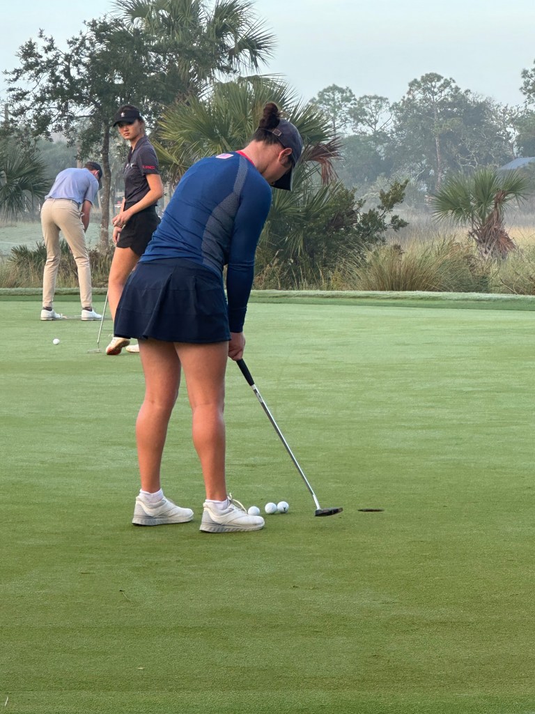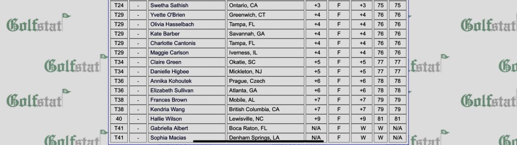 After the round Jordan spoke with Coach Carl and she is confident that she was able to work through what was problematic for her. After 2 hours of practice she came home, did more homework, had dinner, and got to bed early as she will leave for the course at 7am tomorrow for her 8:48 T time off of hole number 1.