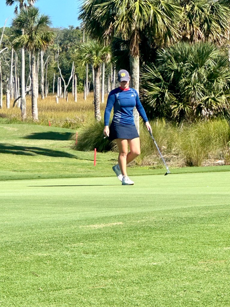 Jordan started on the back, hole 10, and things looked pretty good for her. She parred 10 & 11, 🐥’d 12, parred 13, 14, 15, & 16, bogeyed 17, then got it back on 18 with a second 🐥 to finish the side at -1……Then came the turn and the wheels came off the bus for B. 1 was a bogey, 2 a par, 3 a bogey, 4 a 🐥 (the only one of the side, then she went for a hat trick of Bogs on 5,6,&7 before parring the last two holes. The mess came from the putting where she missed two very makable birds on the first 9, and lipped out a two foot putt on the second half. No sugar coating this one, it could have very easily been -3 or even -4 if the putting was on. With that said, she did manage to roll two long range birds that were spectacular.