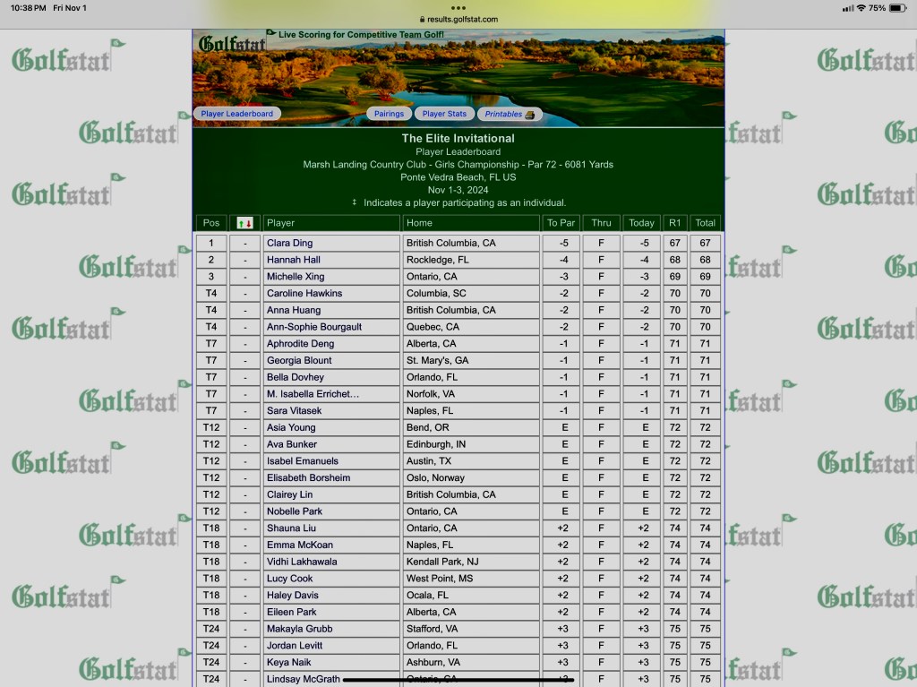 2 thoughts on “Jordan had a rough second half today to card +3 (75) and end day 1 in 24th place at the Elite Invitational. (Click for pics and details).