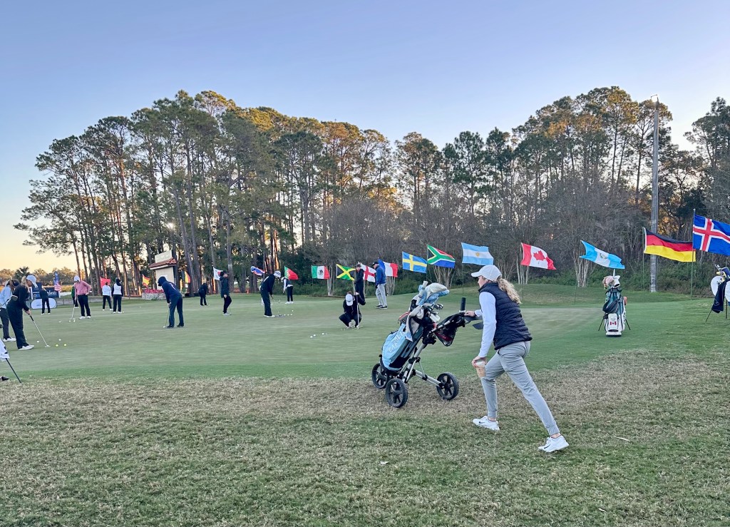 Of the 182 players who were registered for the tournament, 165 remain after day one. Jordan in 32nd place is in the top 20% after the first round, a nice spot to be. The temperature was cold for Florida, starting at 42 degrees when B arrived for her warm up at 7:45am. Wind gusts topped 22 mph creating tough playing conditions.