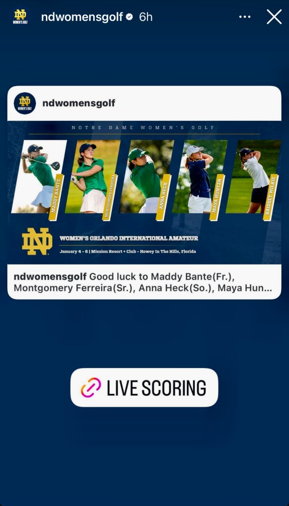 This is a ton of players for one location even with two courses to play. Warm up was a madhouse and parking was all but impossible. None of this rattled Jordan. She got out and did her thing with 6 bogeys, 11 pars and a single 🐥. The course played super long and with the wind blowing like it was there were 2 or 3 holes that B was not able to reach in regulation on this almost 6300 yard track. Jordan had the privilege of playing with her future Notre Dame team mate Bridget Wilkie who on top of being a very nice person might be the best player on the team. There are 5 Notre Dame players on the team and the coaches posted a good luck to them…very classy.