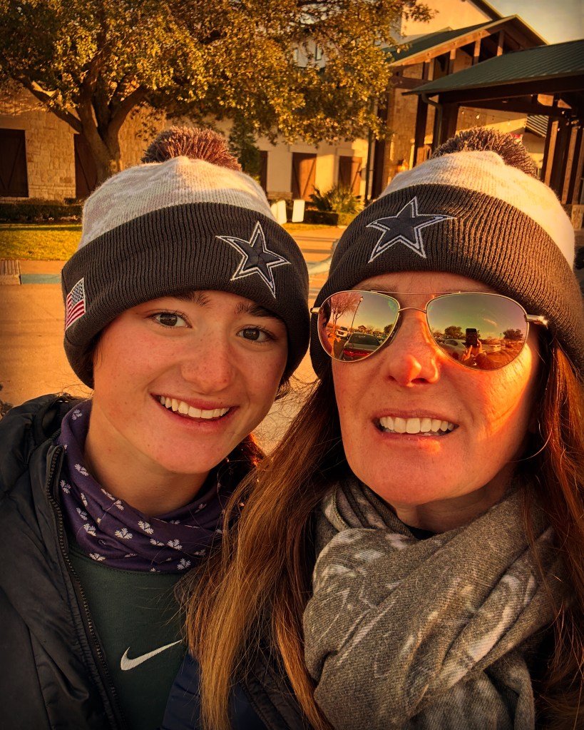 Jordan and SuperMom showing off their Dallas Cowboy hats with pride