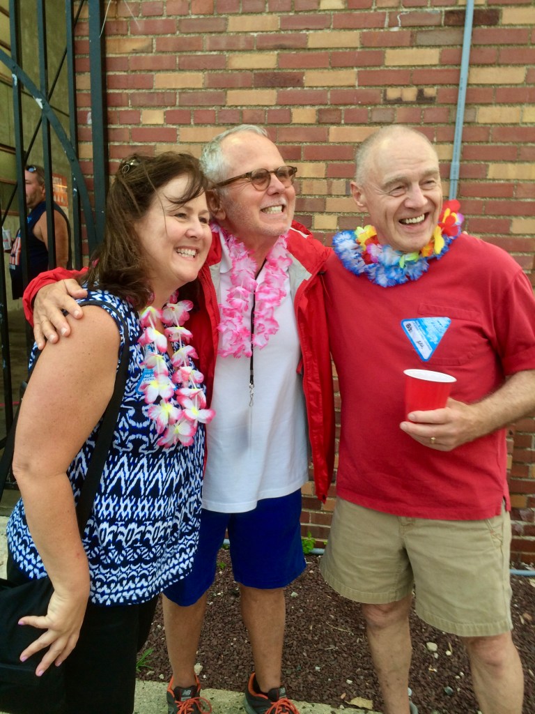 Scrappy on the right with Mike Utley (from Jimmy Buffet’s Band and Kims cousin) and Kim before a show that she took Jordan and dad to in 2014 at Jones Beach