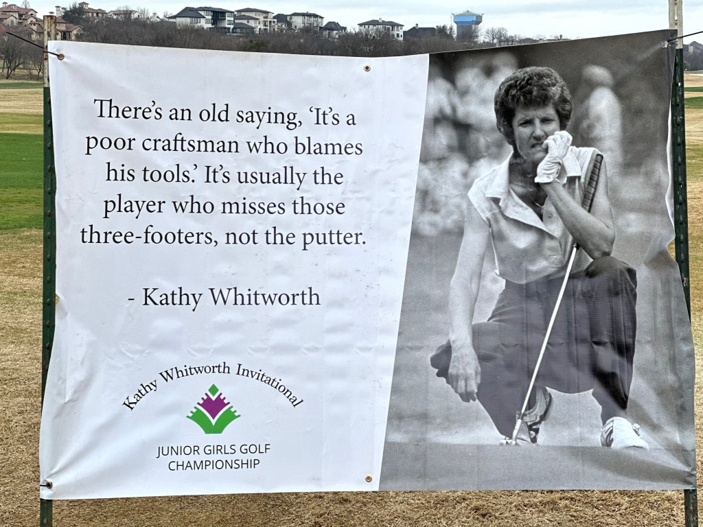Words of wisdom from Kathy Whitworth on a sign at the tournament