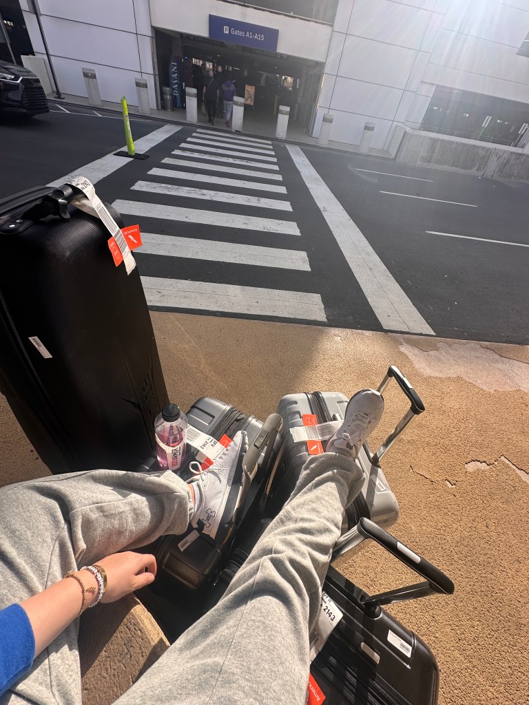 Upon arrival in Dallas, the procedure is for SuperMom to go and get the rental car while B corrals the luggage then lugs it to the curb.