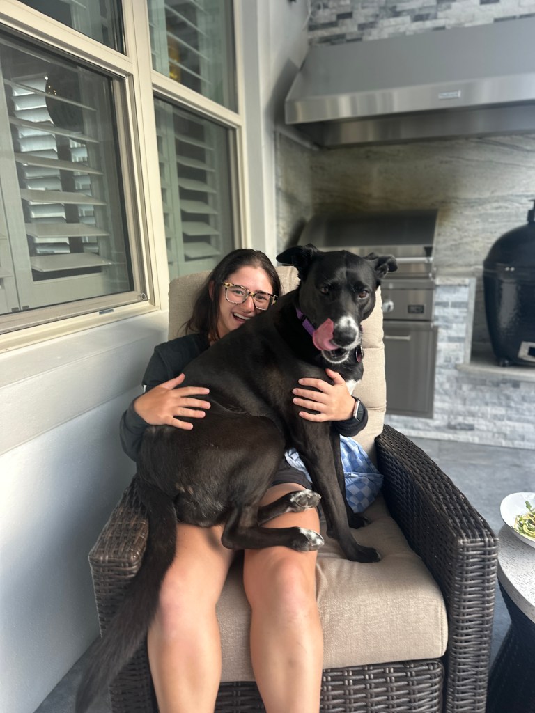B with her other sister, Lulu, the 93 pound lap dog