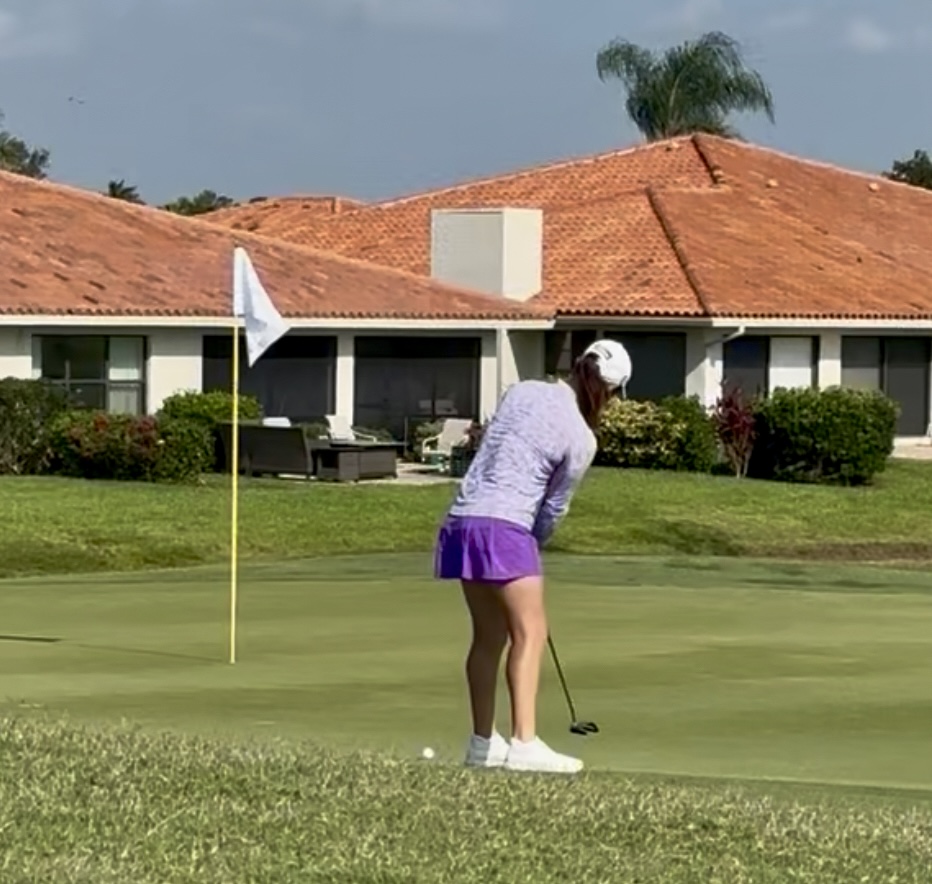 Jordan started on 10 this morning dunking her second shot in the drink. After she told dad, “That was not the ball I was supposed to play with today.” She ended up with a bogey on the hole and that was actually quite a solid result. She parred 11 & 12, 🐥13 and parred the rest of the side ending the first 9 at even.
