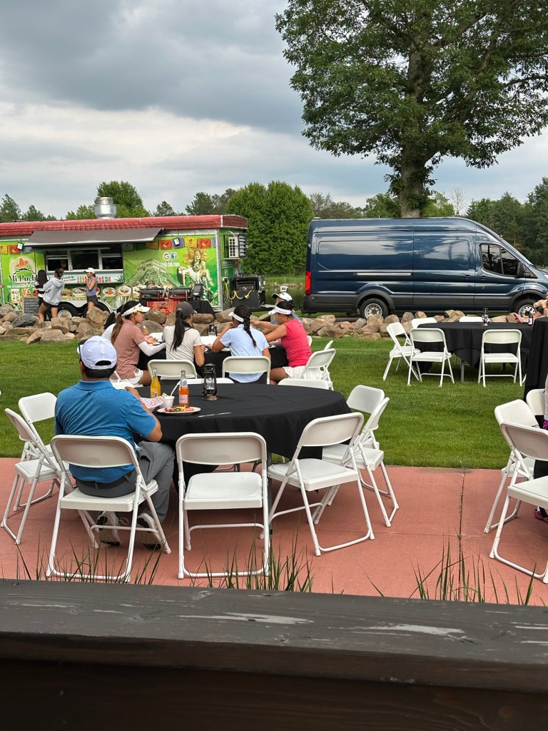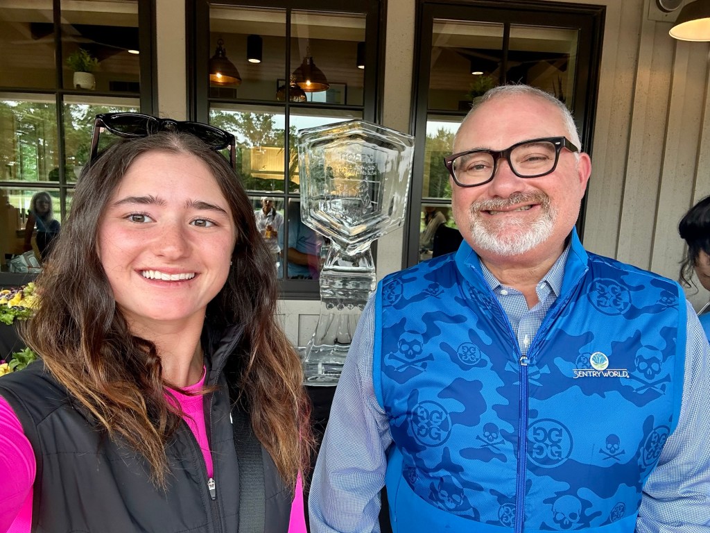After 3 days of work with Coach Carl Rabito Jordan drove 4 hours to SentryWorld golf course in Stevens Point Wisconsin on Saturday afternoon. Sunday she played a brutal 6 hour practice round. Yesterday was the round with the sponsors and executives from Sentry. Last night The tournament put on a great party with lots of activities, food trucks and fun for both the competitors and their families.