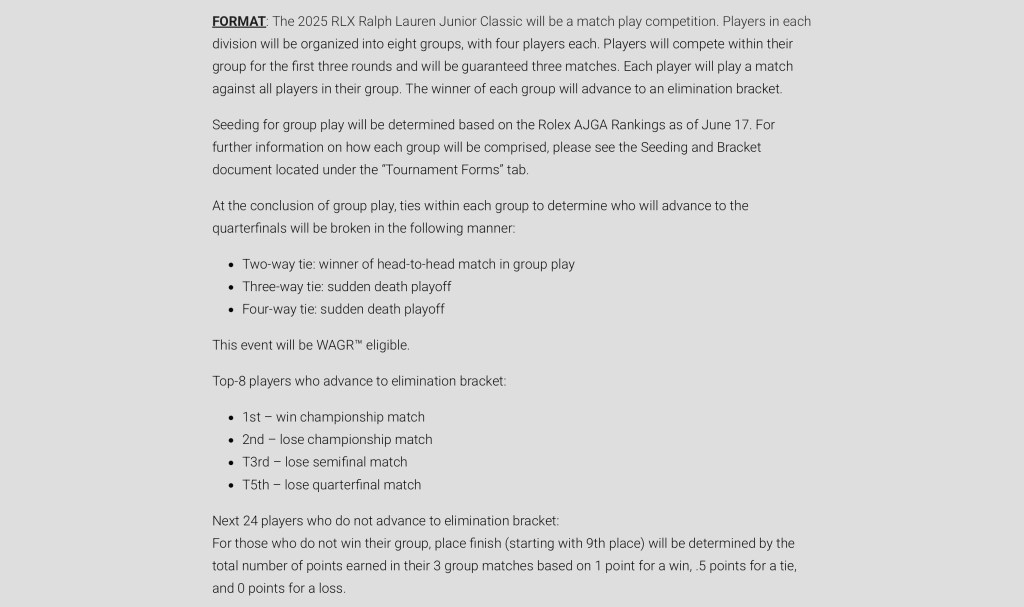 The format for this event will be Match Play. Below is an explanation for how it works and the schedule for the week.