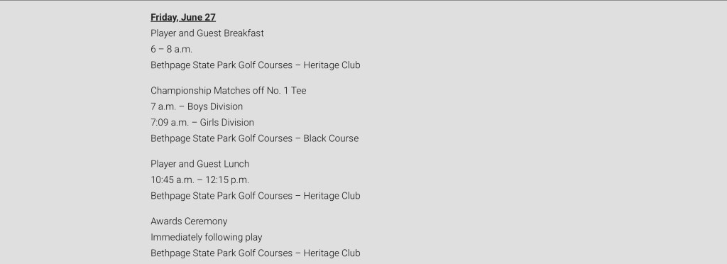 So, after lunch yesterday Jordan took an hour to pack up her room from 5 days at SenturyWorld have a quick shower then meet dad to pack the car for the 4 hour drive back to Bolingbrook where she will tune up with Coach Carl Rabito today after a great sushi dinner last night and lights out by 9:30. Twenty minutes into that journey she got a call from the tournament director of the RLX Polo Ralph Lauren Invitational (run by the AJGA) that will be taking place at the storied Beth Page Black golf course in Farmingdale Long Island this week offering her a spot as she was on the alternate list which she excitedly accepted. This tournament only has 32 girls so being asked to play in it is a “HUGE DEAL” as Coach Carl likes to say. In fact, it is so important that Jordan will withdraw from her qualifier for the PGA Jr. Championship that she was supposed to play Monday and Tuesday at Hampshire Country Club in Mamaroneck to play this. She will instead seek an exemption from the PGA when they vote on such things next month. A big thank you to our friends Ken and Jessica Berkowitz, members of Hampshire who had invited Jordan to play with them on Saturday. As we keep saying, it takes a village and Ken and Jessica are part of Jordan’s village.