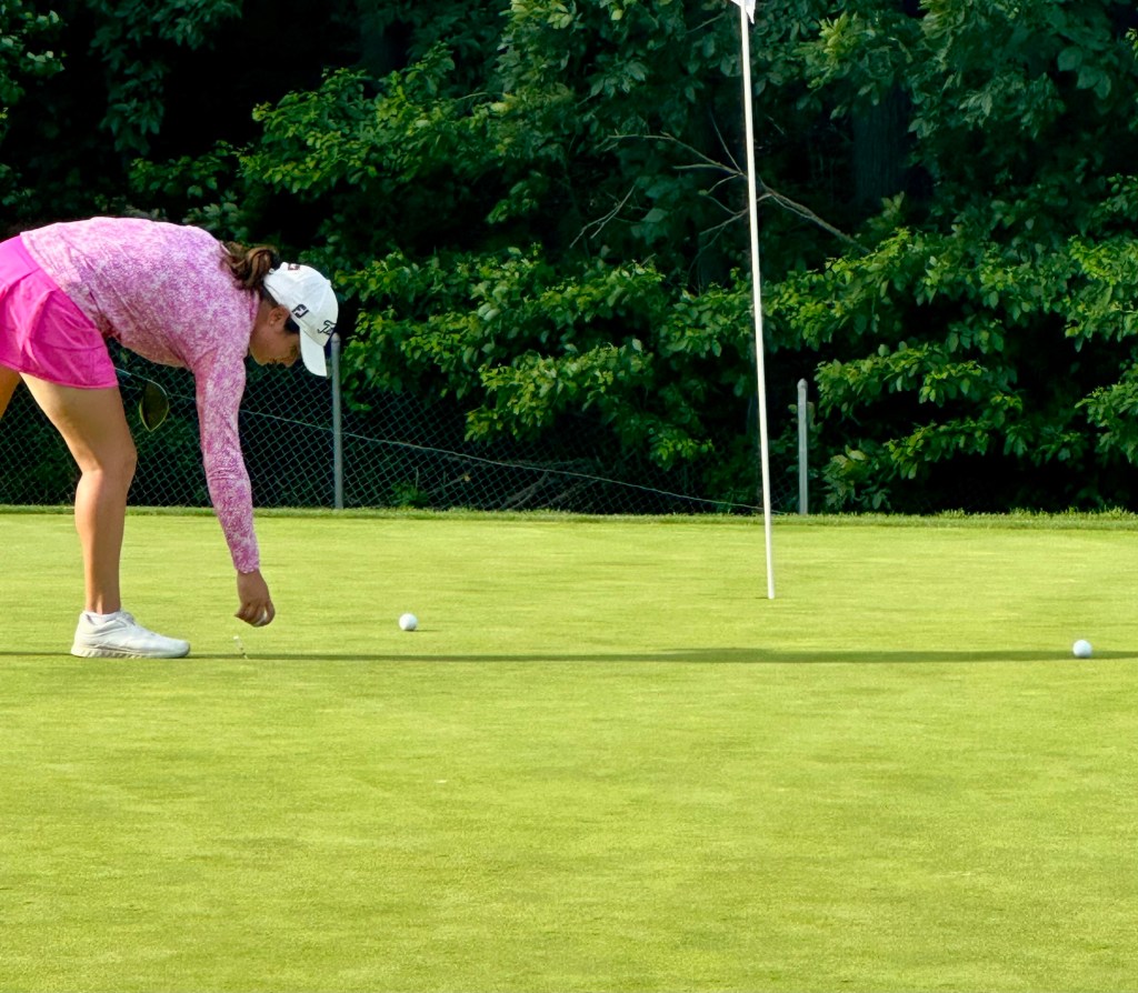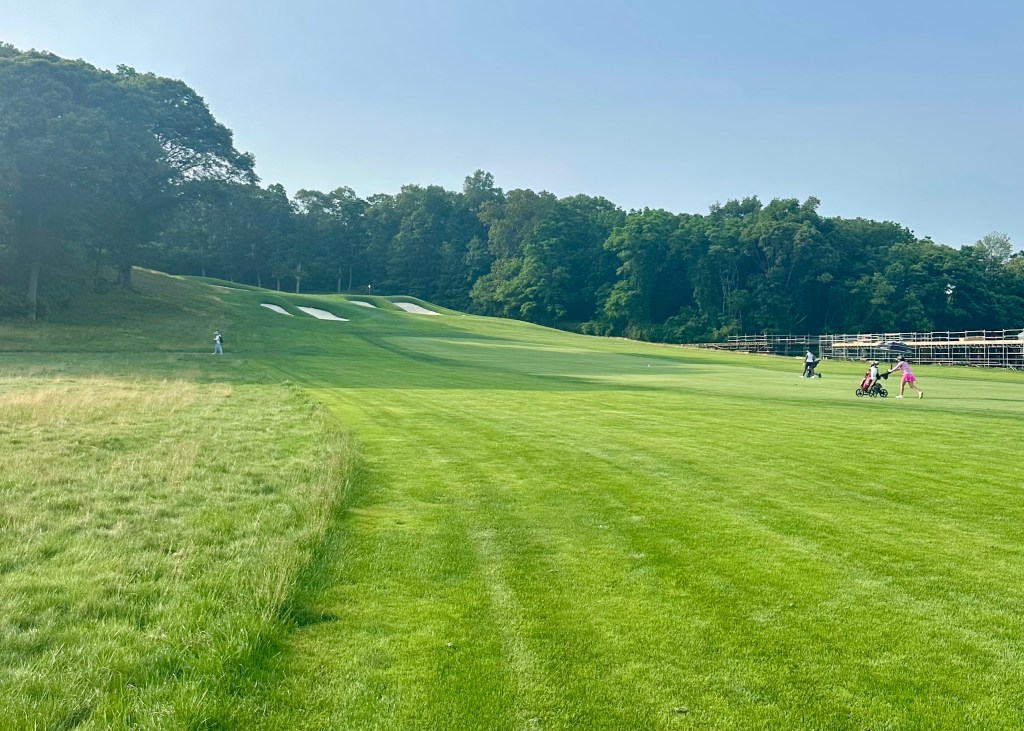 A week ago today B was about to start the Rolex in Wisconsin with no thoughts of RLX. What a difference a week makes. Today Jordan played her practice round at Bethpage Black in 100 degree heat with SuperMom by her side. This course is long, 6500 yards, and it is hard with rough six inches long. If you hit it in the rough, it is going to cost you a stroke, no if ands or buts about it. 32 of the best players in Junior golf that include 8 of the top 25 are here to play. This is Jordan’s first all Match Play tournament and it is great practice for the match play portion of the US Girls Jr. next month in Atlanta.