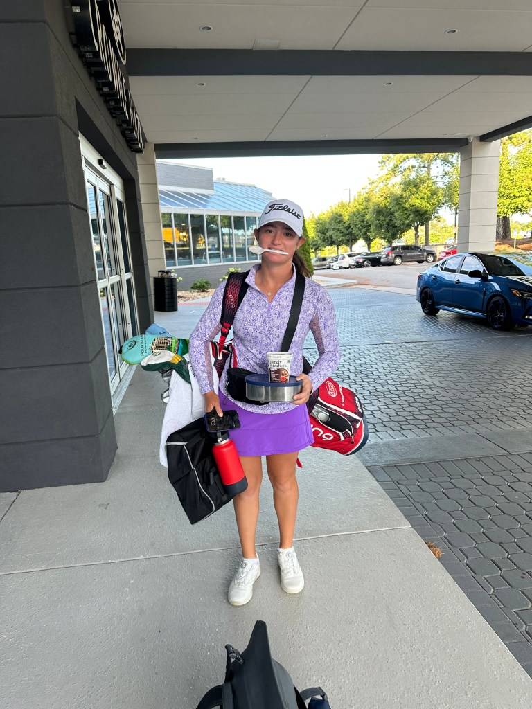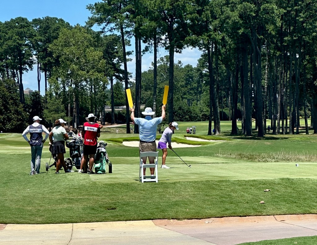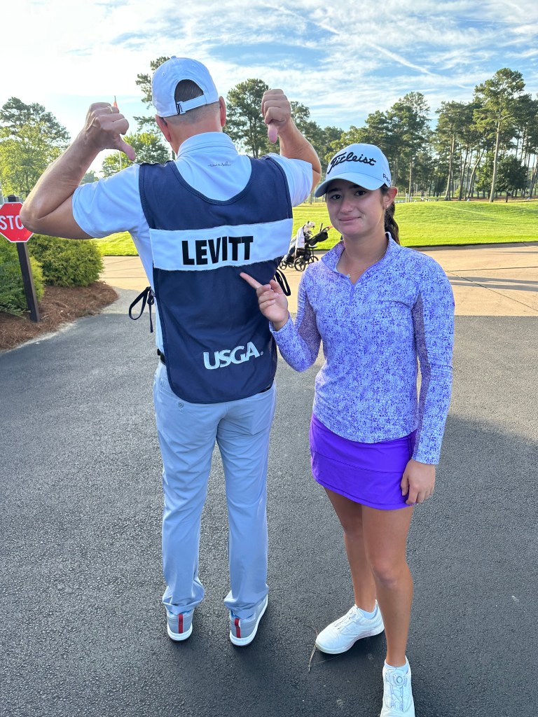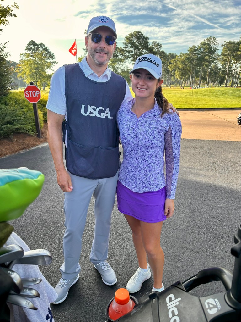 After the round, the team had lunch and regrouped before heading back to the driving range for two hours where Coach Carl with the aid of Cady Uncle David recalibrated everything in preparation for tomorrow. Jordan will have to go low tomorrow to make the cut but she has faced and conquered worse odds and feels confident in her ability to do it again when it matters. T time is at 2:30 off of hole one so she can sleep in a bit, have a nice breakfast and to quote Carl, “Go out and do a piece of work.”