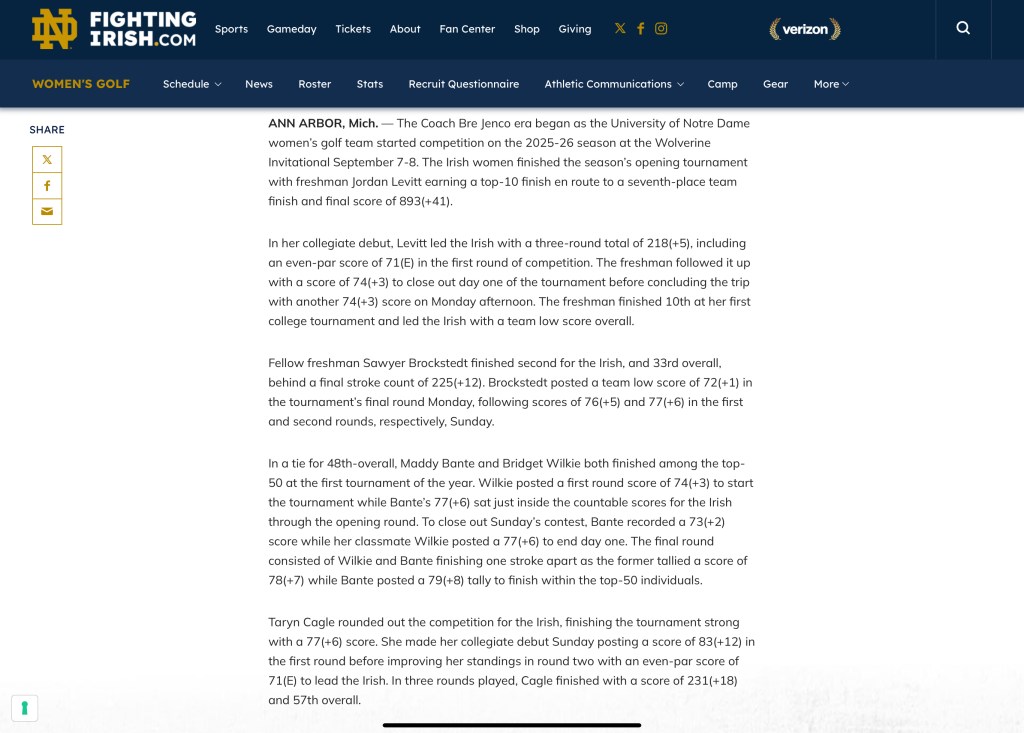 Thats all for now. Next week is the Inverness Collegial in Toledo Ohio where dad will get to watch his first college tournament. Thank you for following.