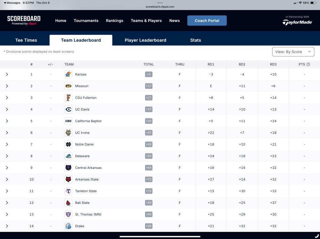 This tournament is a big one with 14 teams and 78 players. It will be televised for those who want to watch it beginning with the second round tomorrow at 2:30 and on Monday at 9am on ESPN PLUS.