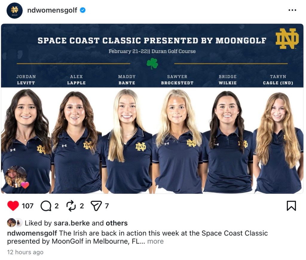 Instagram post from ND Women’s Golf