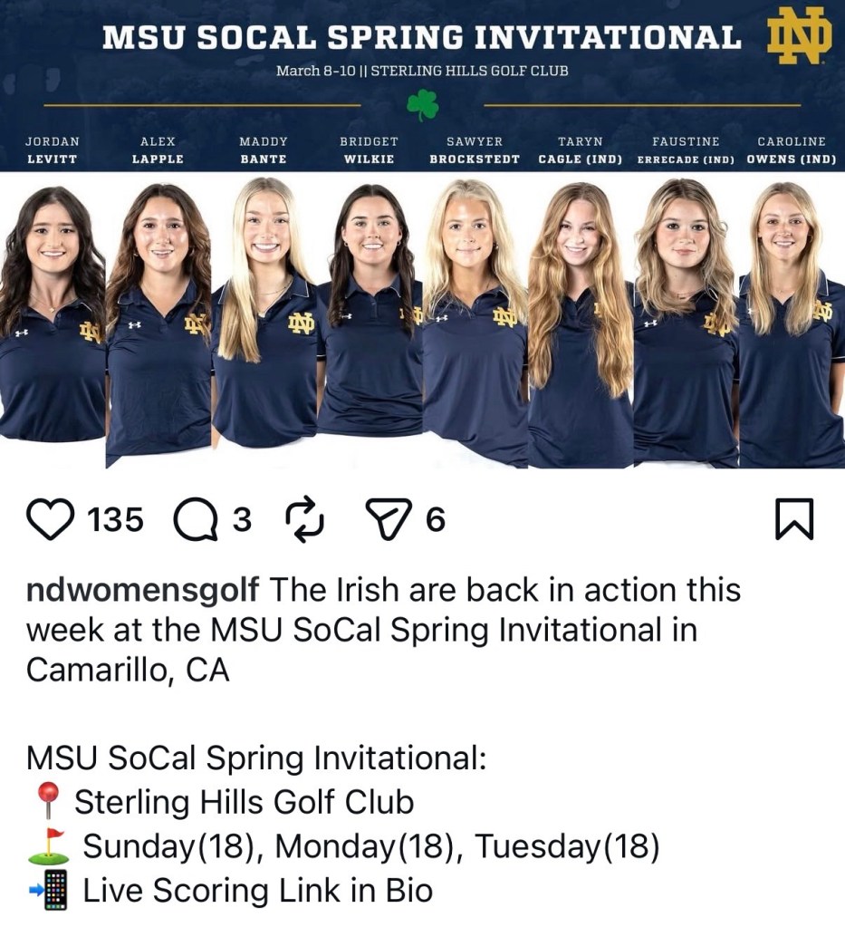 For the first time since September, Jordan’s entire team will play a tournament that begins this afternoon in California. The MSU SoCal spring invitational starts today and will be contested over 54 holes, 18 a day Sunday, Monday, Tuesday.
